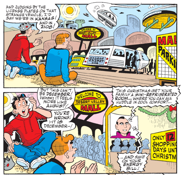 While Steve Scott, Archie’s press rep, says there’s no official climate education policy, it’s a frequent theme. And although other writers have tackled climate, most of these stories were penned by George Gladir, who died on April 3rd of last year, at age 88.